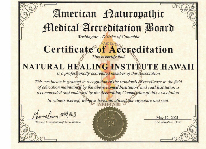 NHI is Nationally and Fully Accredited by the American Naturopathic Medical Accreditation (ANMAB)